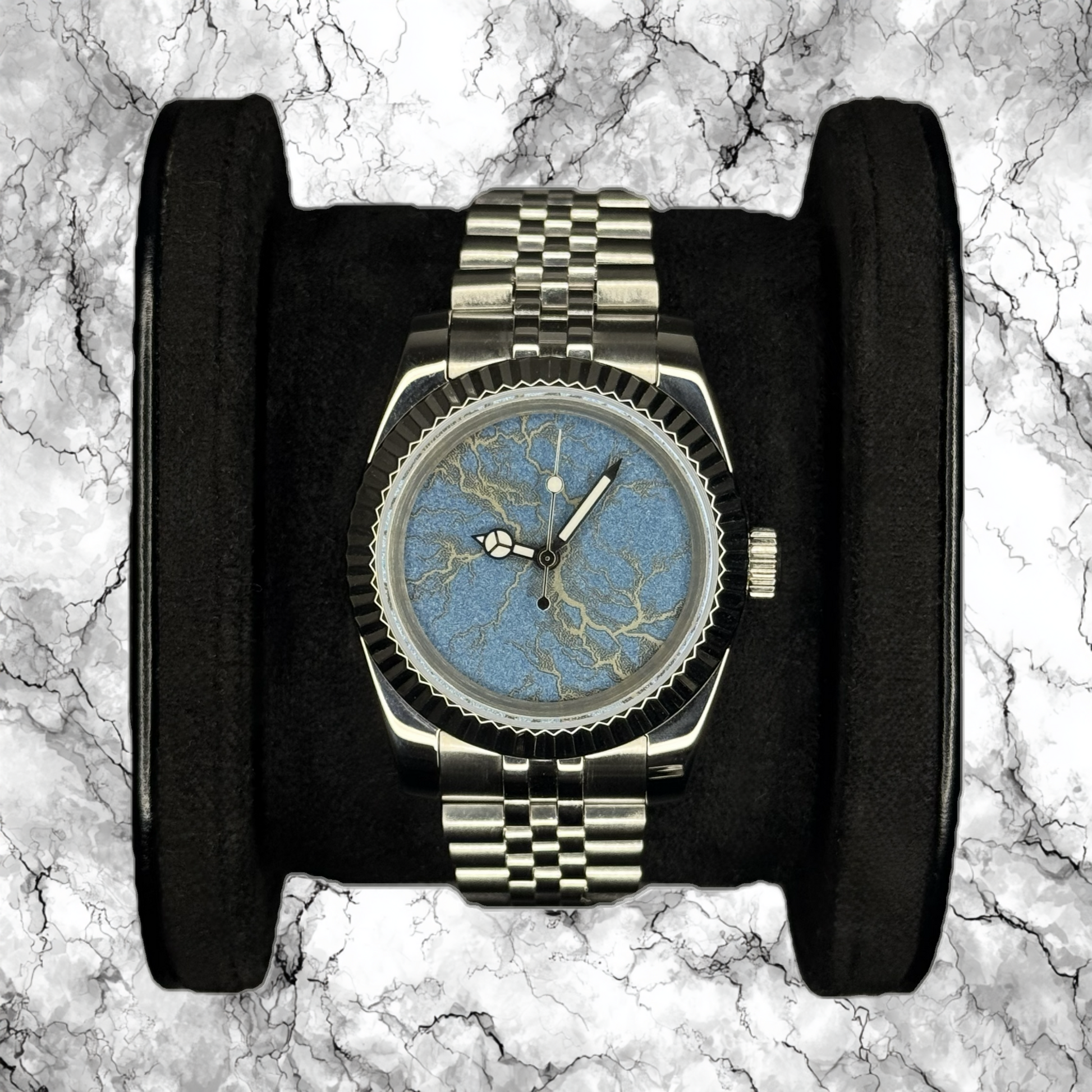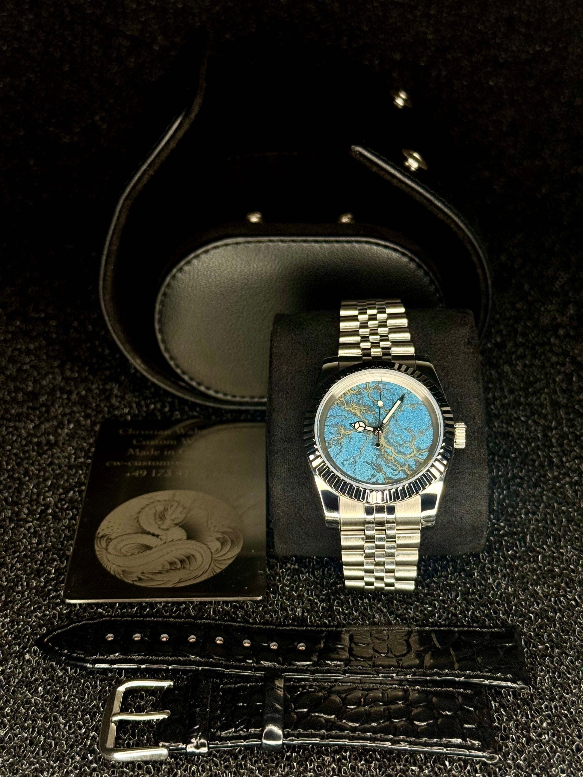 Dial: Sparkling Light Blue/Yellow, Hand-Painted & Laser-Engraved