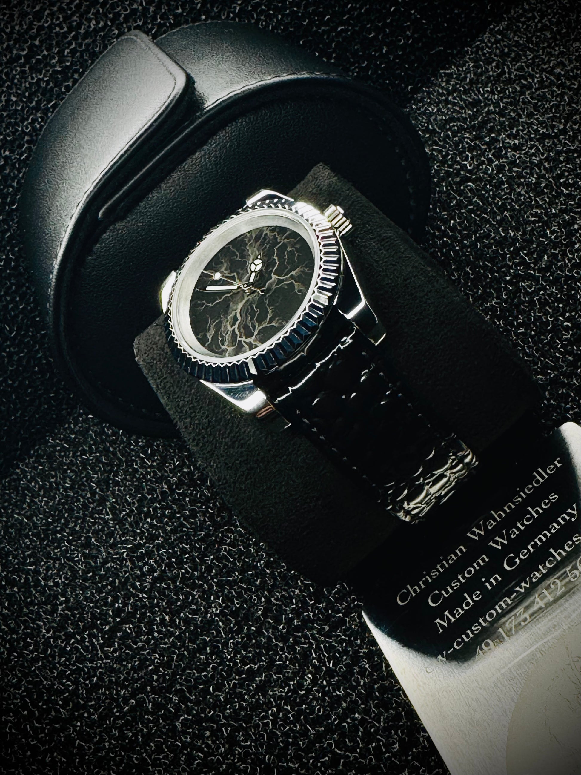 A canvas of storm and bold artistry—handcrafted for seamless performance. No batteries, just motion. Premium steel and leather for all-day comfort.